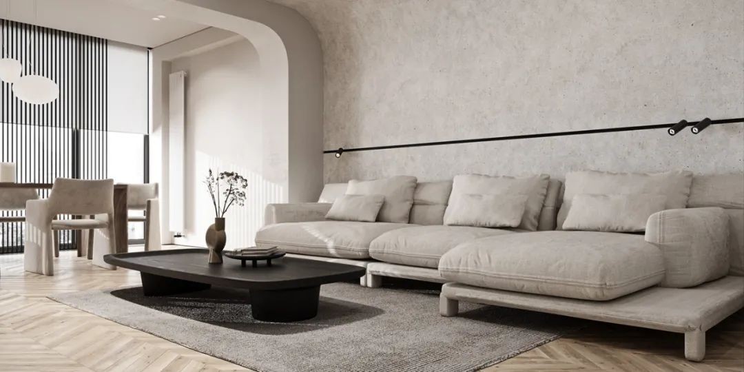 110㎡的三口之家,希望拥有一个让他感到自豪而且独特的家。设计师Roman Lutsenko以简约主义为基调,采用柔和的中性色调和材料,融合wabi sabi元素, 创造了一个舒适安静的家。