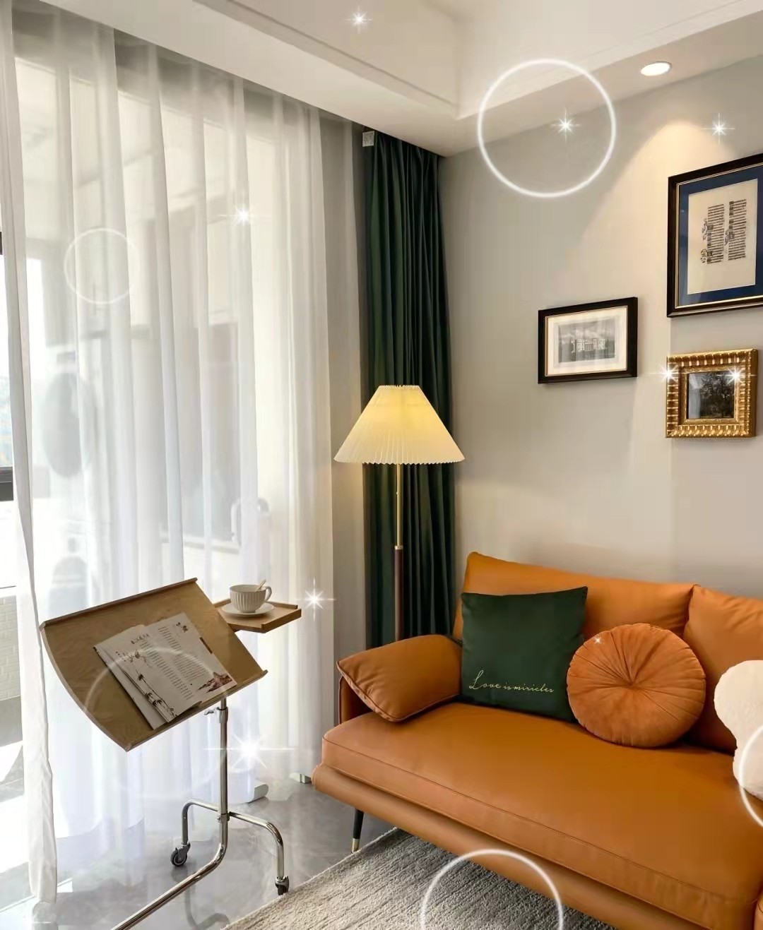 牛油果色的乳胶漆,整体饱和度非常高,显得整个房间非常温暖,软装保持同色系统一,这样既时尚又温馨。