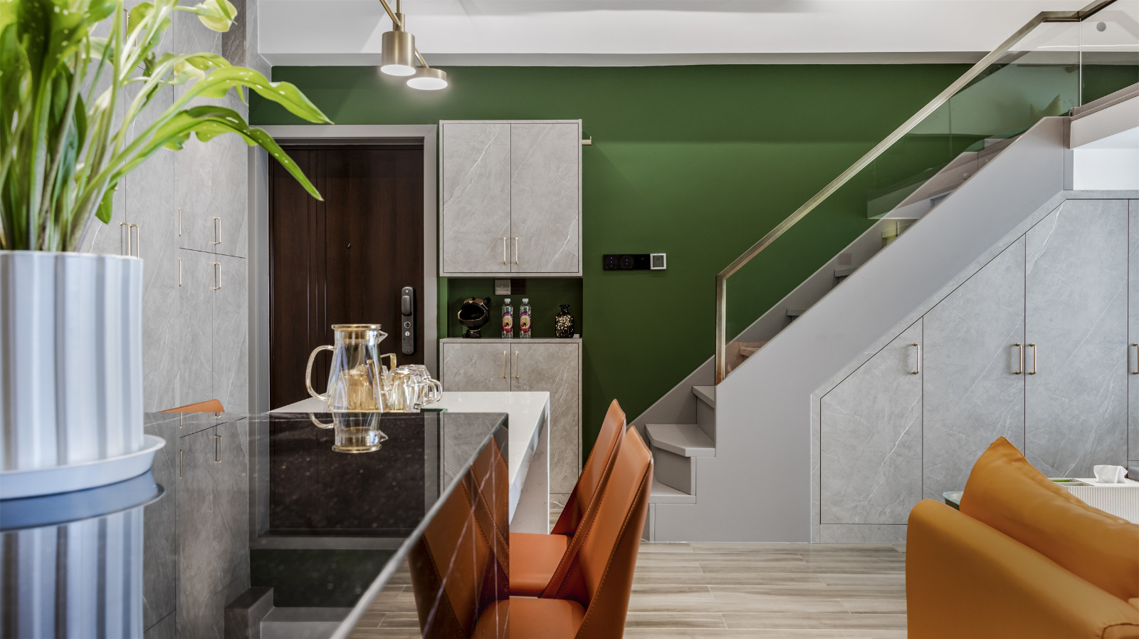 一整面天生自带贵气的墨绿色背景墙,改变了大白墙的寡淡,让人眼前一亮,***般的舒适。