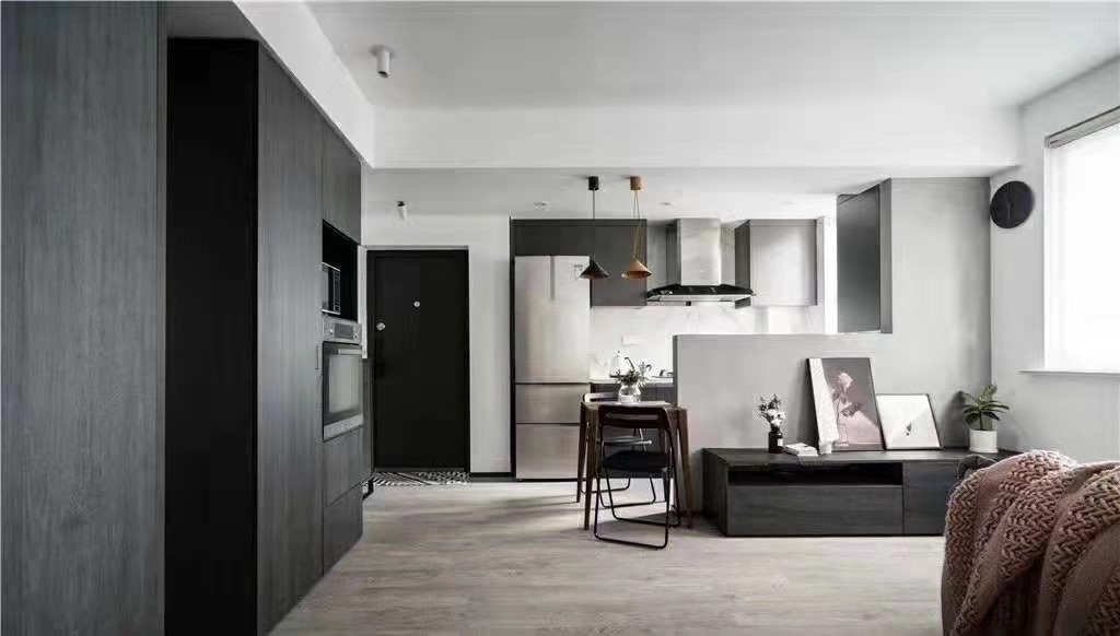 简单的一室一厅,因空间局限,考虑到开放式厨房,增加空间通透,储物利用率