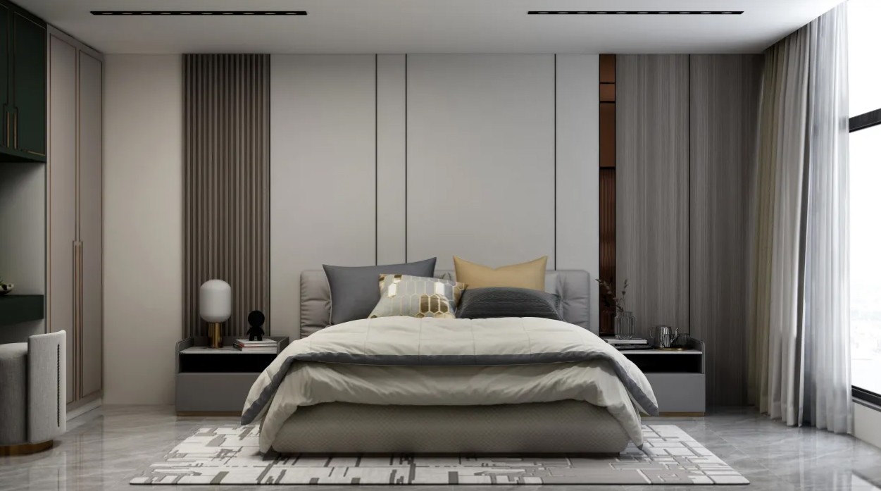 大卧室,小客厅,业主平时没什么接待的朋友,在卧室呆的时间较长,故希望卧室相对大一些