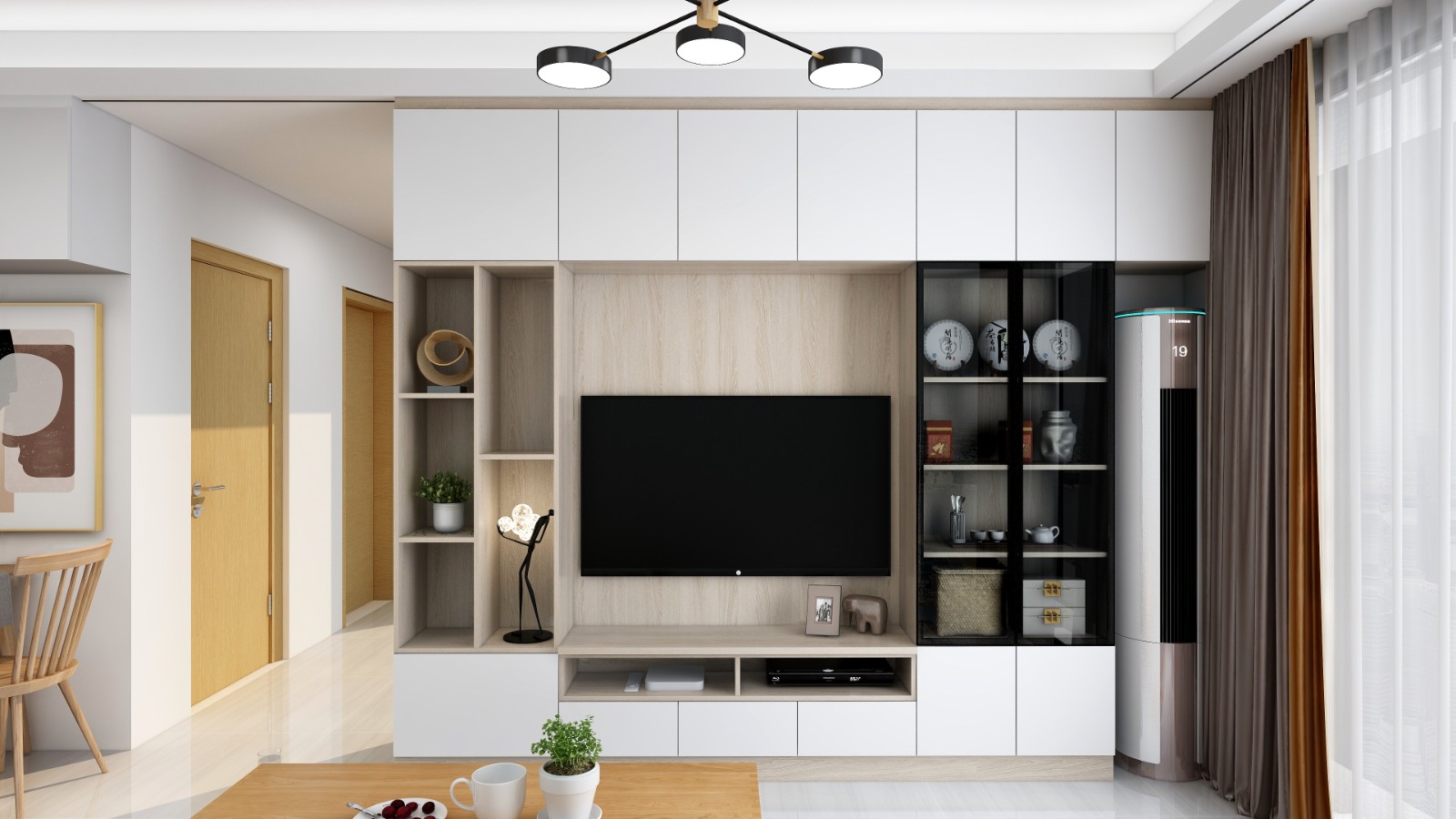 电视柜右边嵌入空调,整体感强。