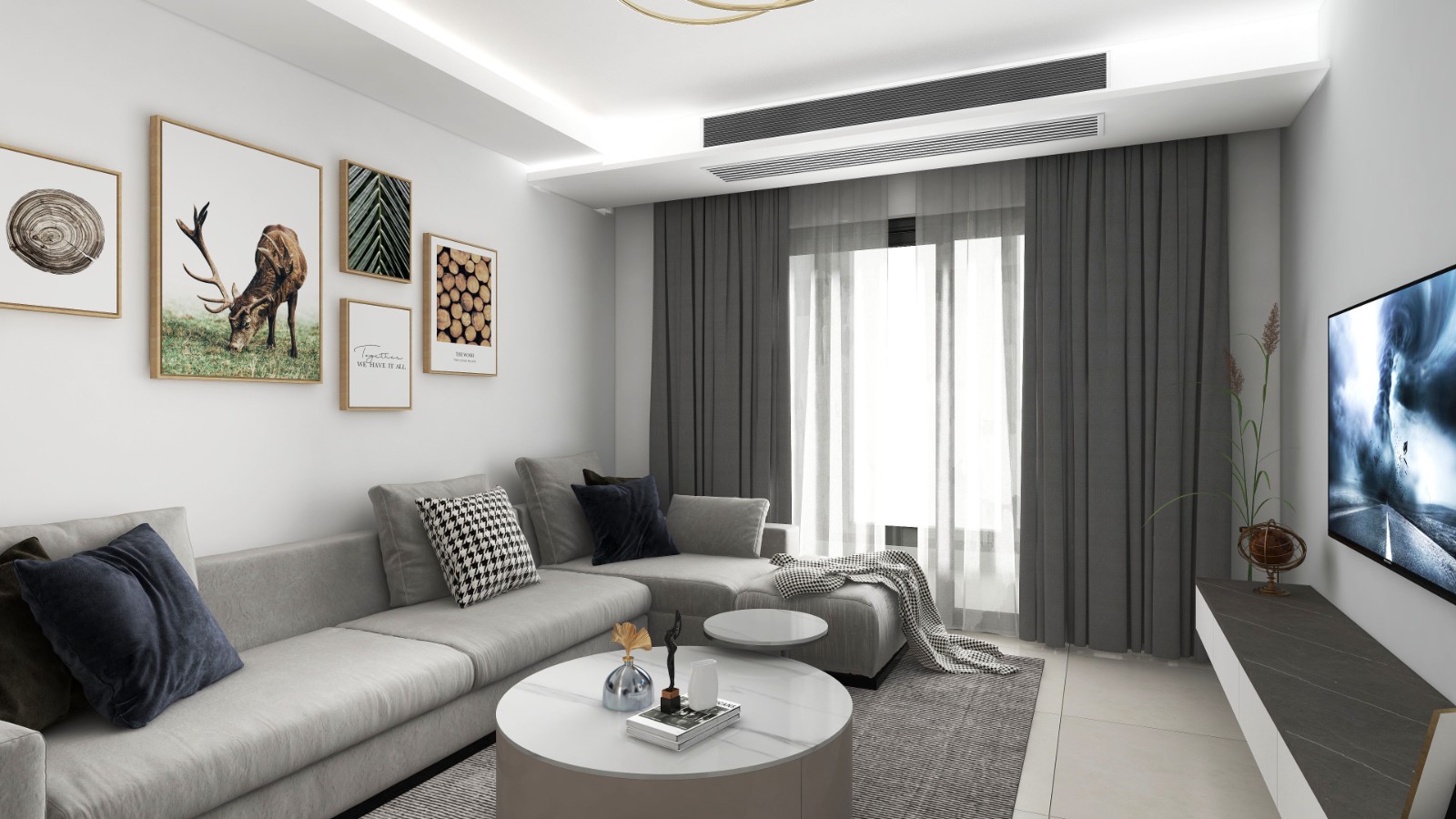 搭配灰色窗帘,无差别配色,更显整体***感。