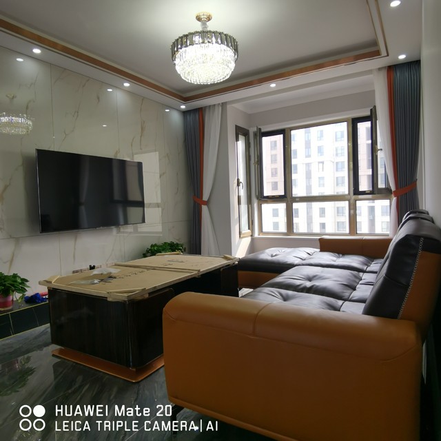 客厅电视墙采用当下流行的岩板格栅做搭配