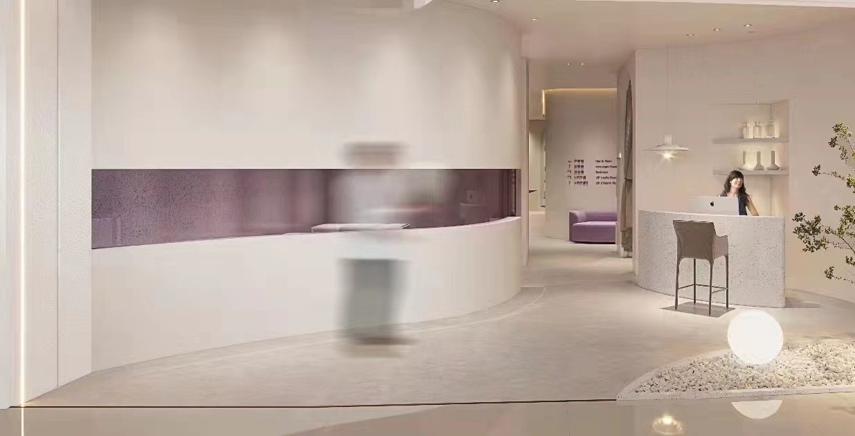 墙地面采用微水泥工艺,色彩温馨,也为接下来要进行的产后修复项目做好心理的铺垫。