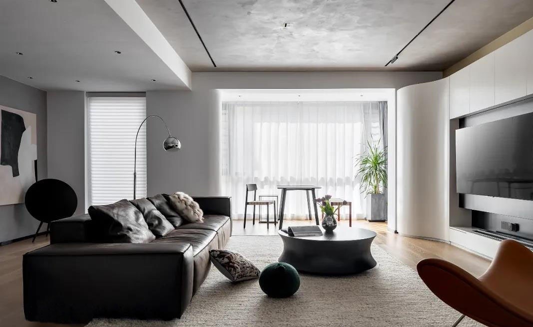 客厅是一家人最经常停留的空间,也是女主人最满意的地方。 从客厅到阳台用左右两道弧线自然连接起两个空间,围绕着沙发形成的洄游动线让客厅显得开阔敞亮,让人在进入的瞬间产生惊艳感。