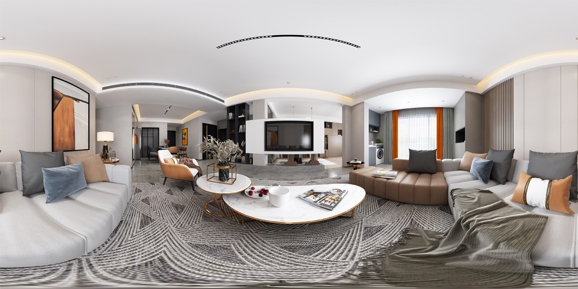 轻奢风客厅效果,悬空背景墙,无主灯设计