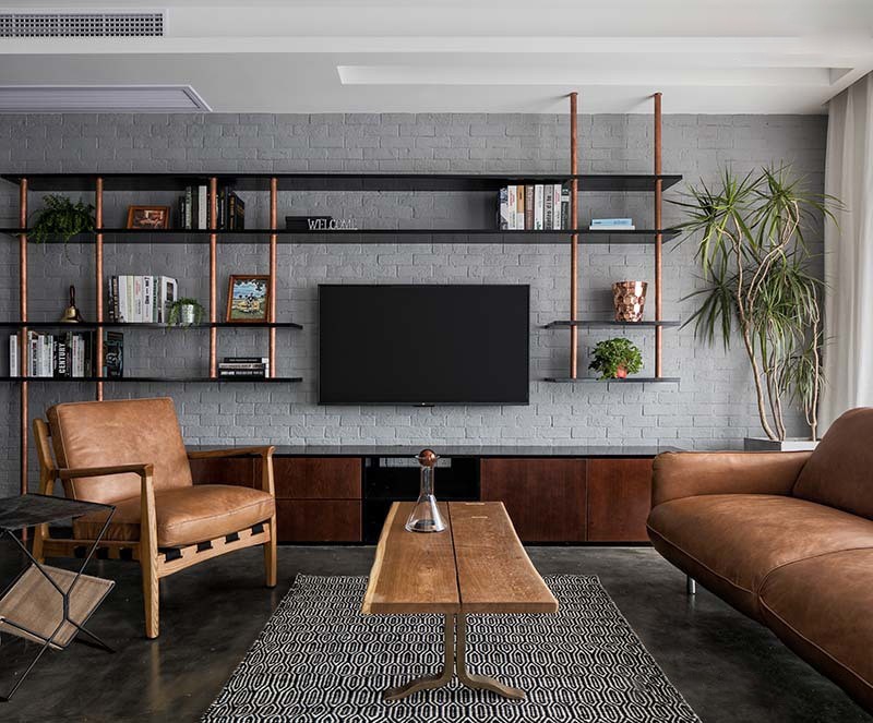 “粗狂”与“时髦”近乎反义,却能在设计师的巧手下相互融合。的文化砖、天然的水泥地面,还有铁艺和黄铜刻意保留的粗犷。却和皮质沙发、天然木材相辅相成。工业风的阳刚之气里,竟碰撞出时髦雅致。
