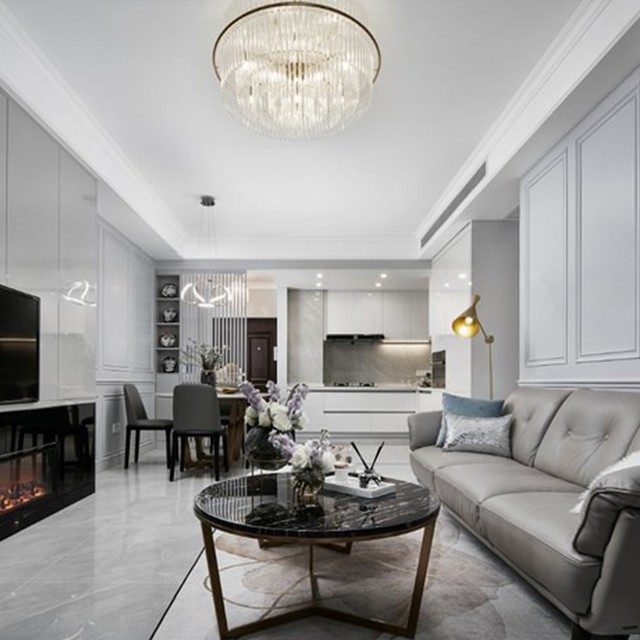 客厅沏上一壶清茶,点上一座熏香,灰调的空间中弥漫着袅袅轻烟。电视组合柜底部电壁炉燃烧的仿真火焰,更加让人沉浸在此刻享受的氛围。生活的节奏慢下来,可以在此时感受舒适惬意。