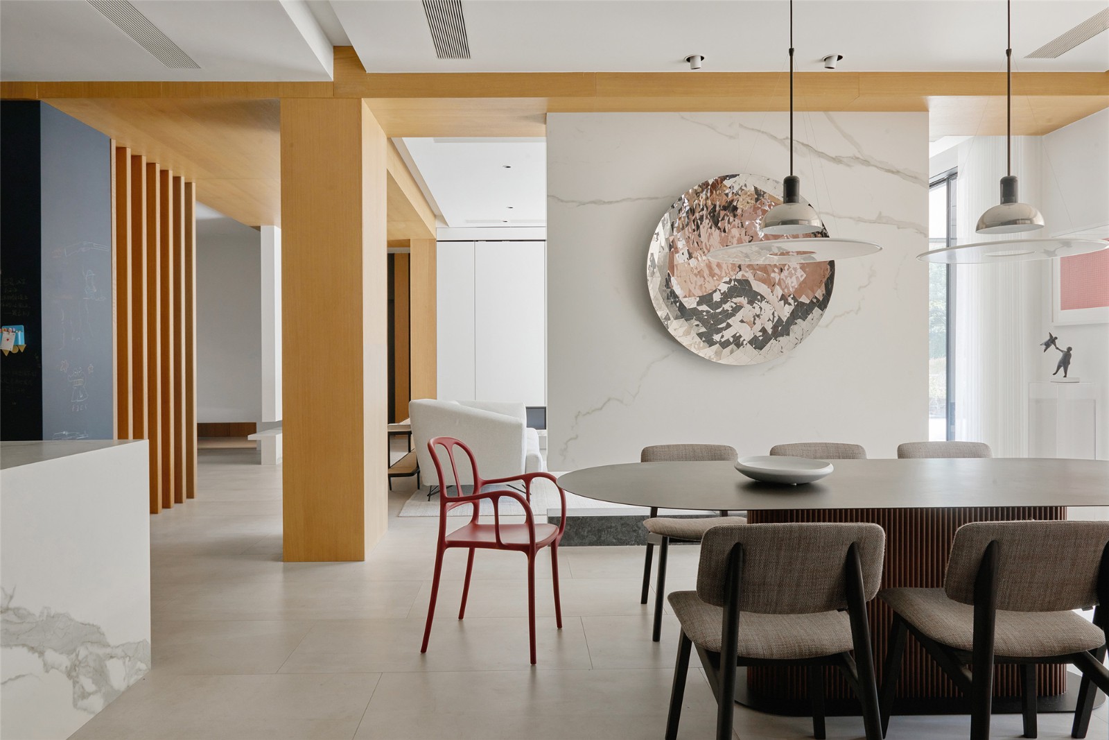 光线经过折射,在墙面移动,形成了最为自然的装饰。令空间拥有了丰富的动态美,自成风景。