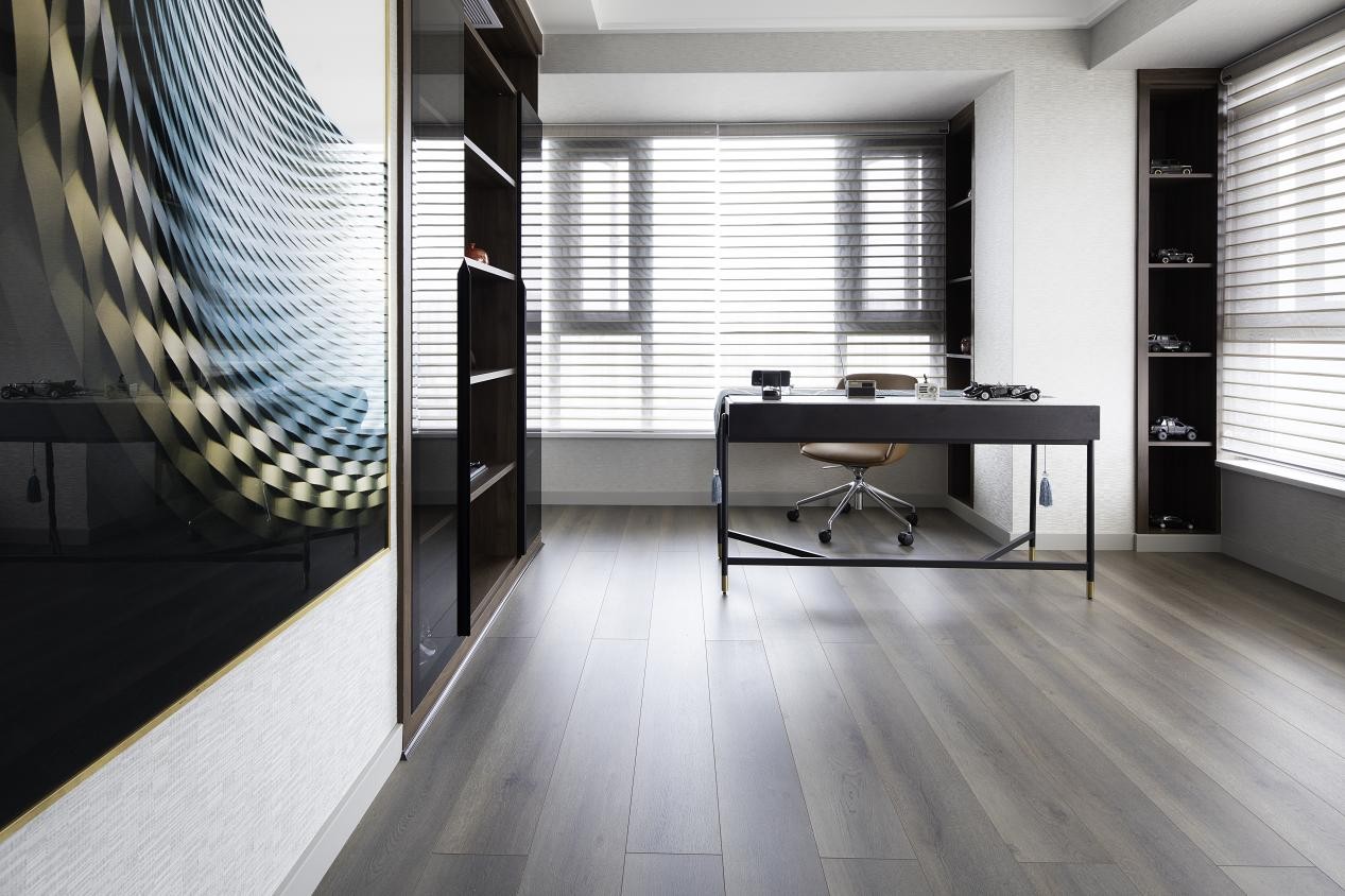 书房是业主心心念念的一处功能区。因为业主平常特别喜欢自己一个人享受读书的快感和乐趣。设计师单独拿出这处房间设计成书房。地板采用木地板铺设而成,书房区域看上去更有温度。