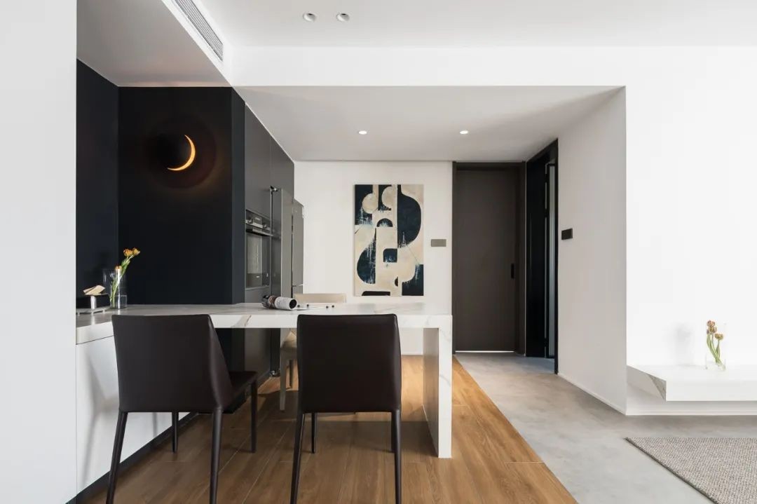 餐边嵌入餐桌节省空间的同时还增加收纳