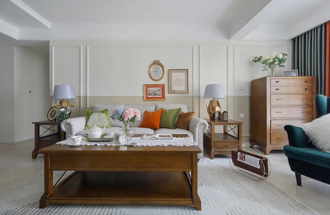 奶茶色作为大面积的底色,营造一种柔和舒适的居家氛围,流畅的法式石膏线条增添空间精致感。