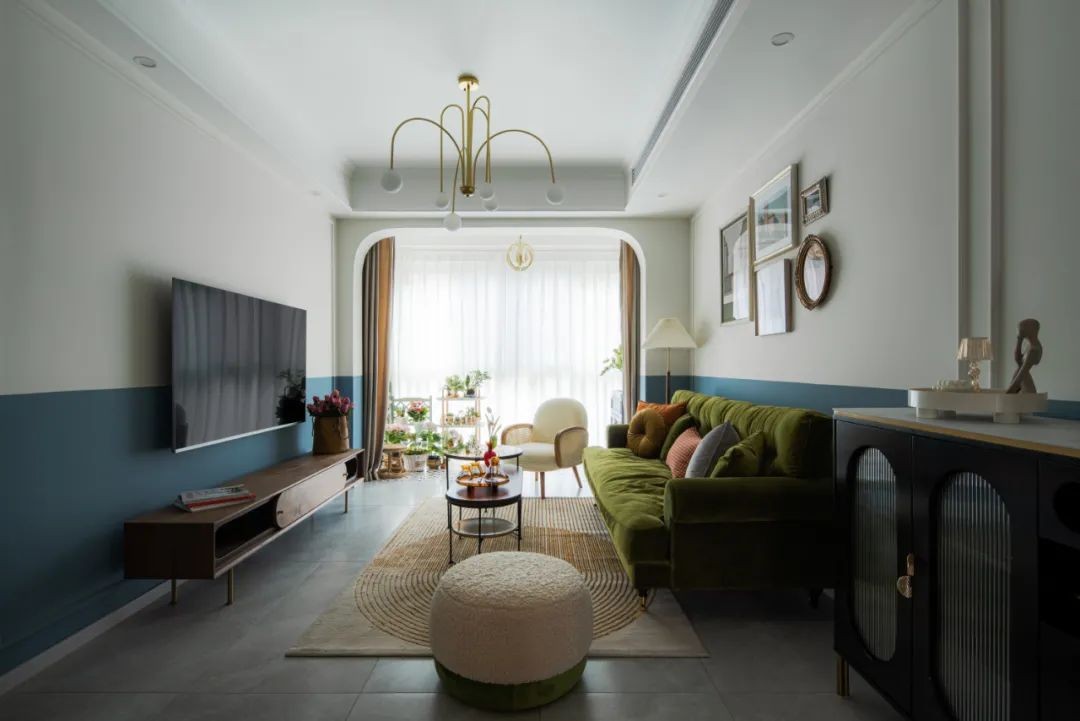 客厅采用清爽干净的配色,半墙漆分色点缀,简单也有情调。