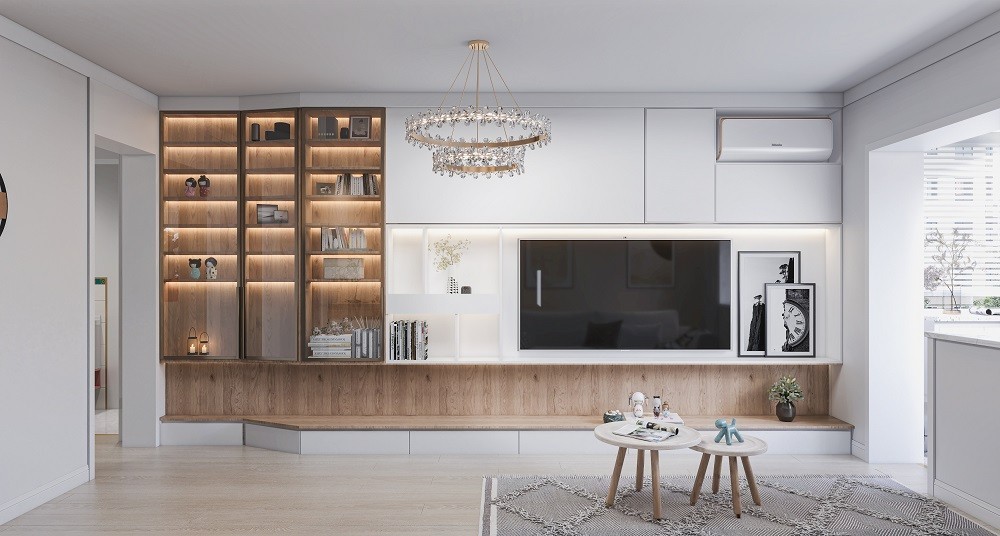 本案例是一套婚房,夫妻俩是在国企单位上班,女业主要求利用好空间的设计(同时又能够储物并且还可以展示)储物柜和展示柜要求多