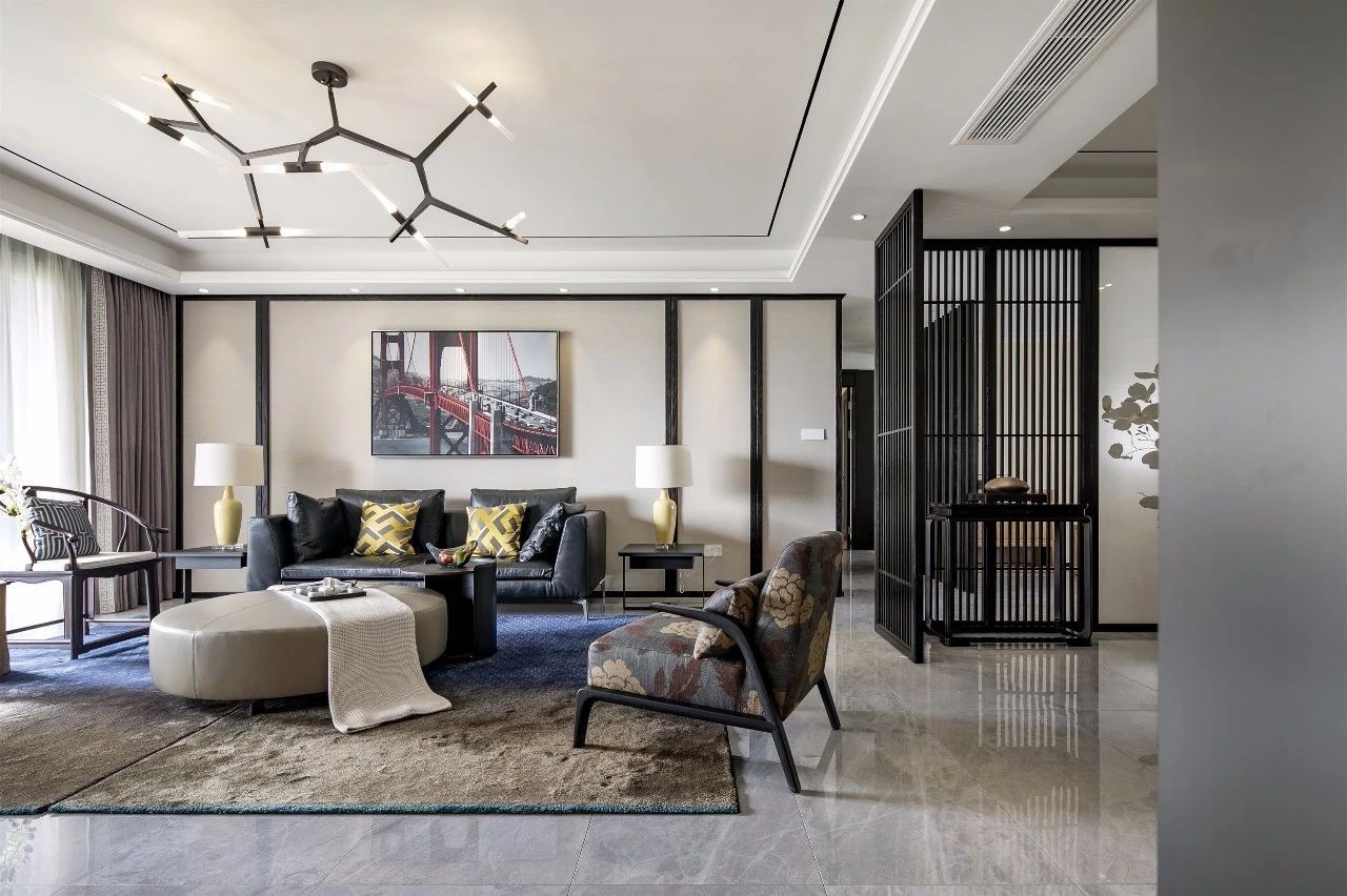 户型四室一厅一厨三卫。业主喜欢新中式风格,需要3间卧室1个书房。需要干湿分离卫生间,想有一个岛台,平时用来做早餐桌。整体客厅需要视觉开阔,因为中式颜色偏深色,但是想尽量保留中式风格基础上,颜色明亮些。