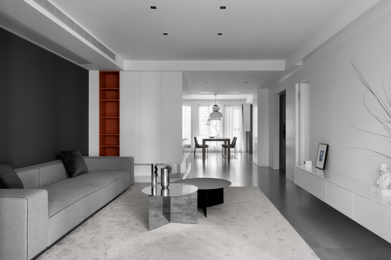 灰与白之间的搭配,呈现出极简中带有些高调。