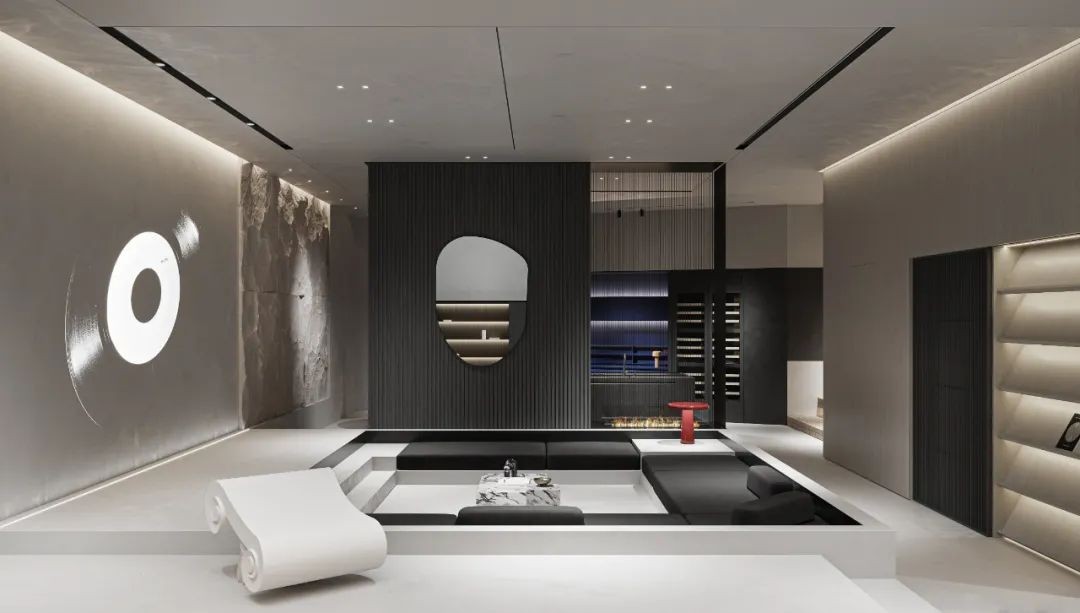 对于居住空间的理解,质感与舒适缺一不可。所以在休闲设定上,以纯粹与自在为蓝图导向,保留了“沉浸式”与“无界定”的设计概念,将客厅设计成下沉式的座位区,黑与白的经典撞色,简练中带着***,既保留了原有空间的空旷视觉,又增加了高低落差,让客厅层次更为立体。