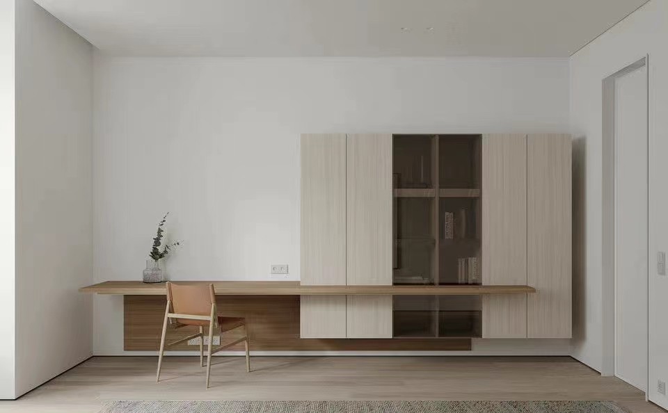 原木色书桌搭配浅色书柜