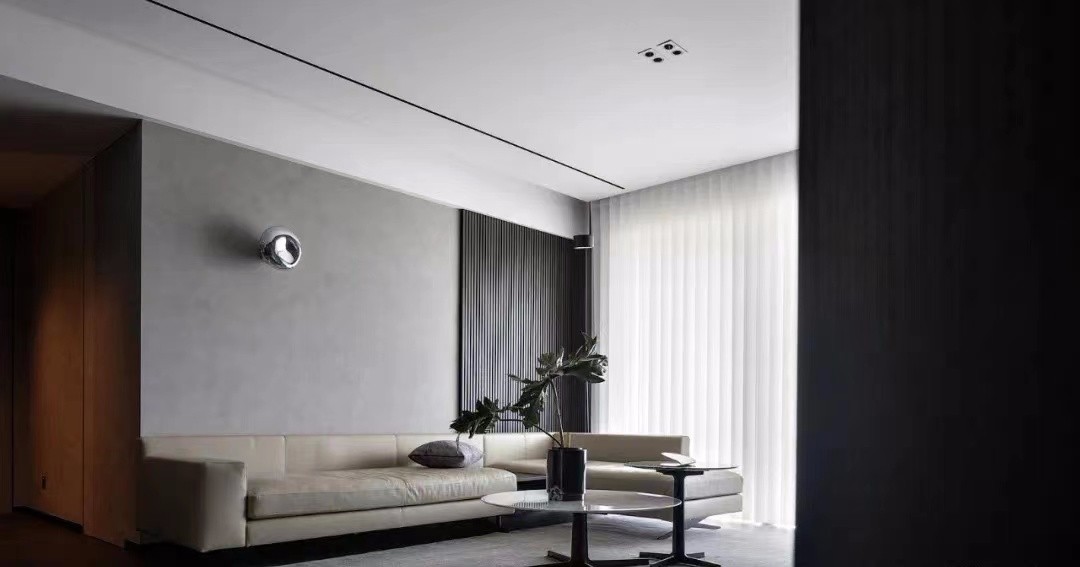 顶面暖光洗墙,增加层次的同时,平衡黑白灰的冷峻感