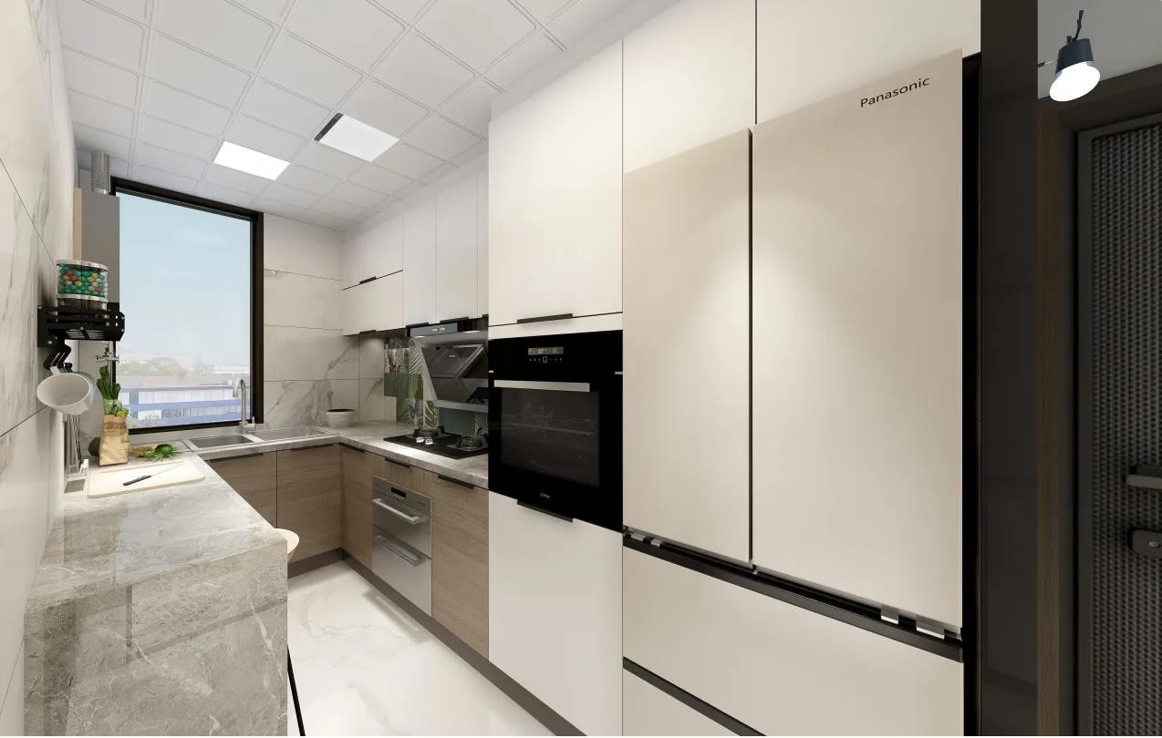 双开门大冰箱,家用小电器均收纳再一个区域,方便电路排布和检查