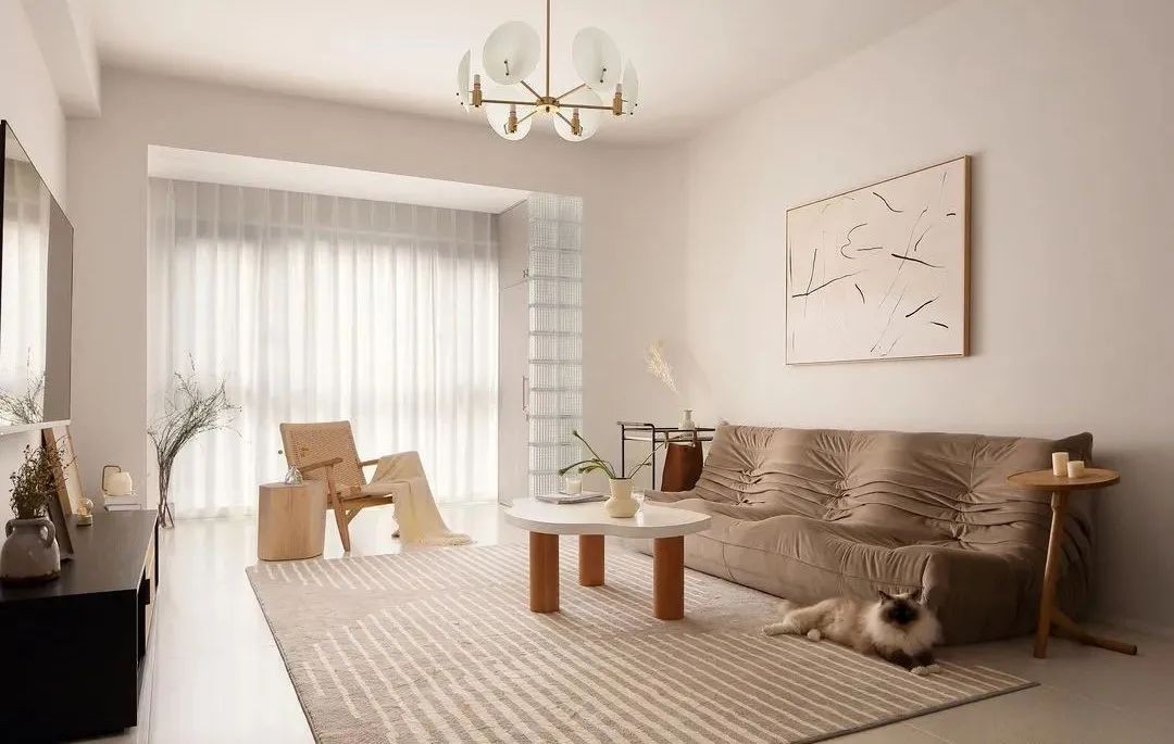 客厅的一角搭配的***ins风素色陶瓷花器,器质不拘,明快小巧,为空间带来闲静的禅意。来到客厅,一组养眼的色彩瞬间映入眼帘,奶油的温润,搭配暖白色、奶咖、木质家具,奠定了全屋风格的基调。整体空间在简约的基础上,透露出淡雅柔和的平衡,分分钟柔软又***。