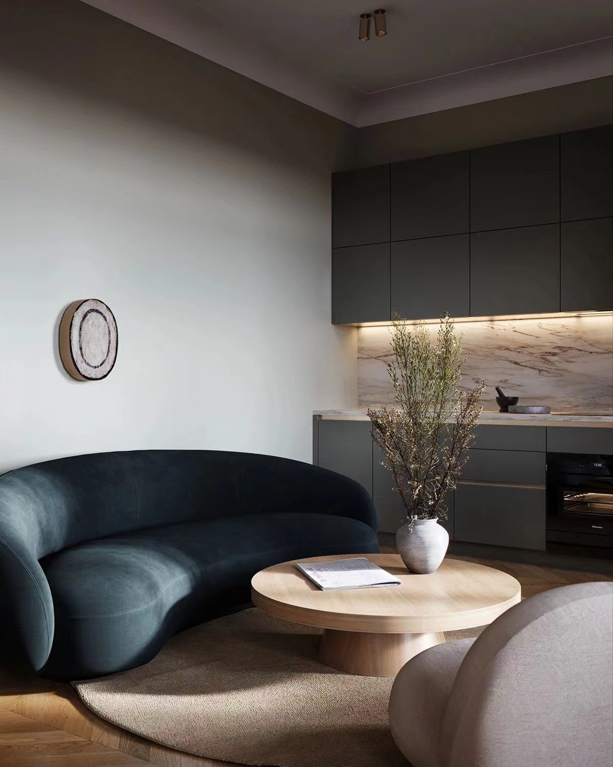 一张墨绿的沙发把空间的优雅,奢华演绎于那条柔和的弧形