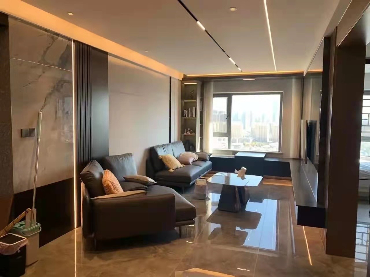 背景造型使用岩石+硬包,带来的是现代时尚而端庄的空间感。