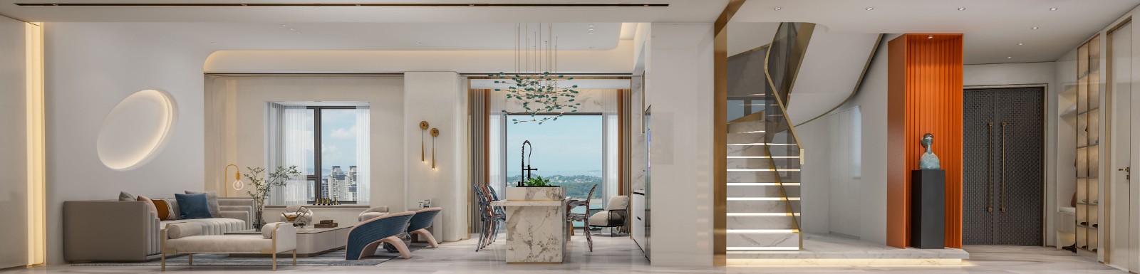 开放式厨房 客厅 餐厅 吧台相辅相成