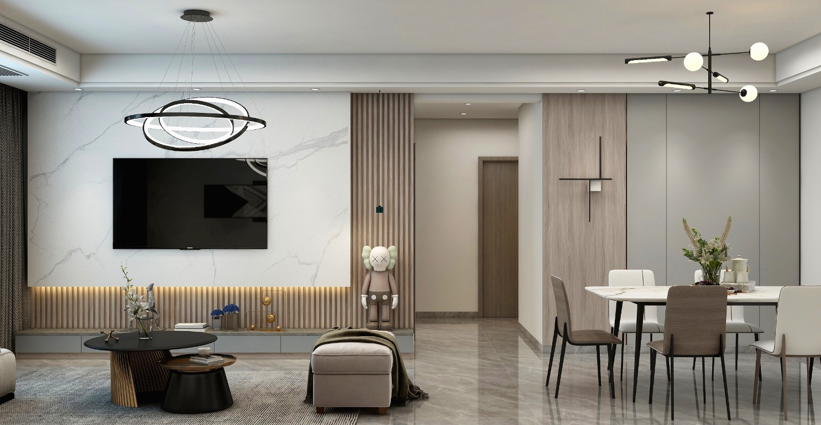 超大客厅设计,起居室与餐厅完全隔离,互不干扰动静分区,功能分区合理,保证主人生活的私密性