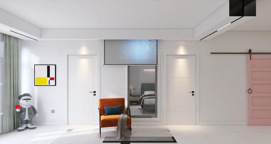 整体颜色主要是马卡龙配色 考虑到采光,新空间应采用大面积雾化玻璃 定制橱柜增加阅读存储空间