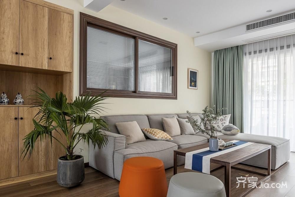 118㎡日式风,背景墙开窗增加采光,明亮通透三居室