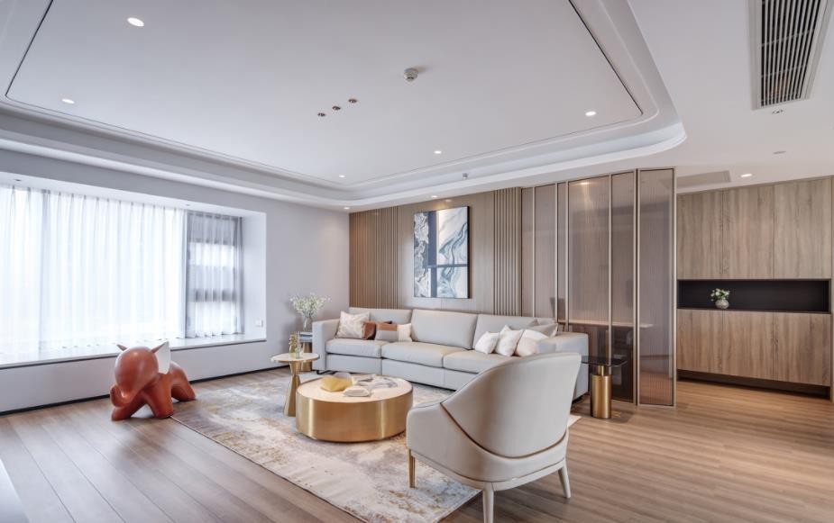 香槟金不锈钢的点缀装饰,质感上的均衡与格调上的低奢传达出年轻化的空间理念