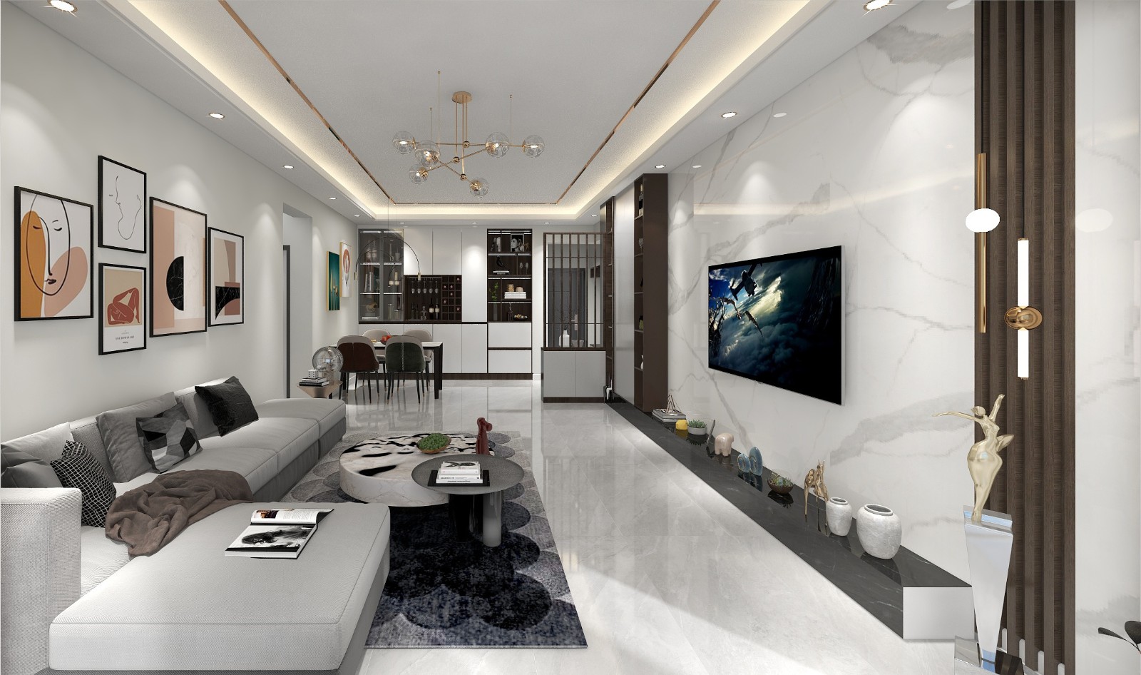 电视墙与沙发墙不对称,相差比较大,客户在乎风水,还是把电视墙放在长的这面墙上