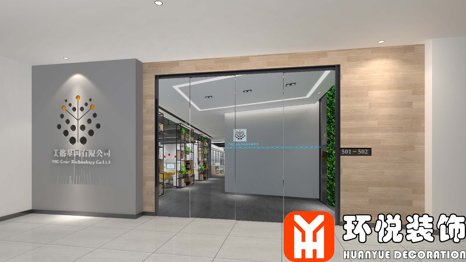 内部分隔的办公室利用透明的玻璃门与外部形成互动,设计上降低空间的活跃度,以更沉稳的氛围匹配应用场景。