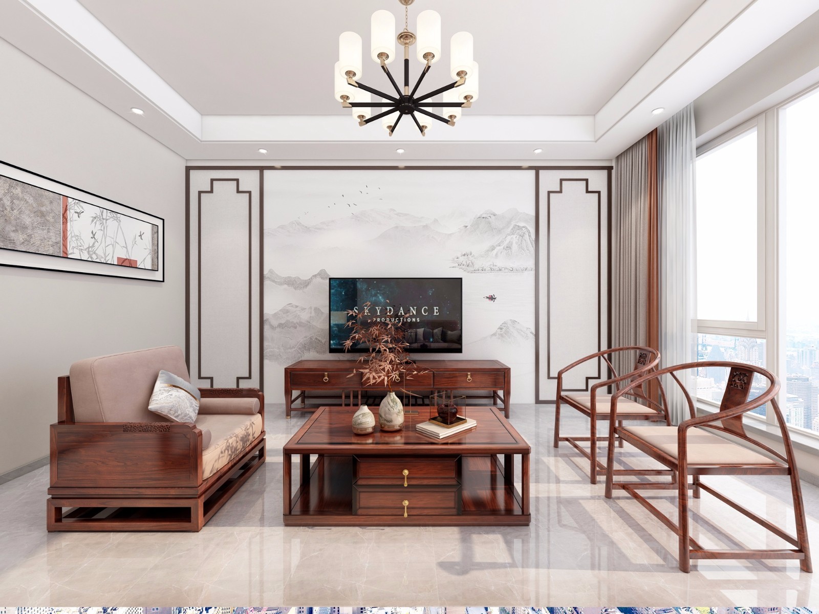 主卧老人房:老人房注重实用性和功能性。装饰质朴淡雅,低调沉稳,内敛的色调与水墨画般的场景营造创造出一方安宁的休憩场所,山水画的加入也让空间更加舒适温和