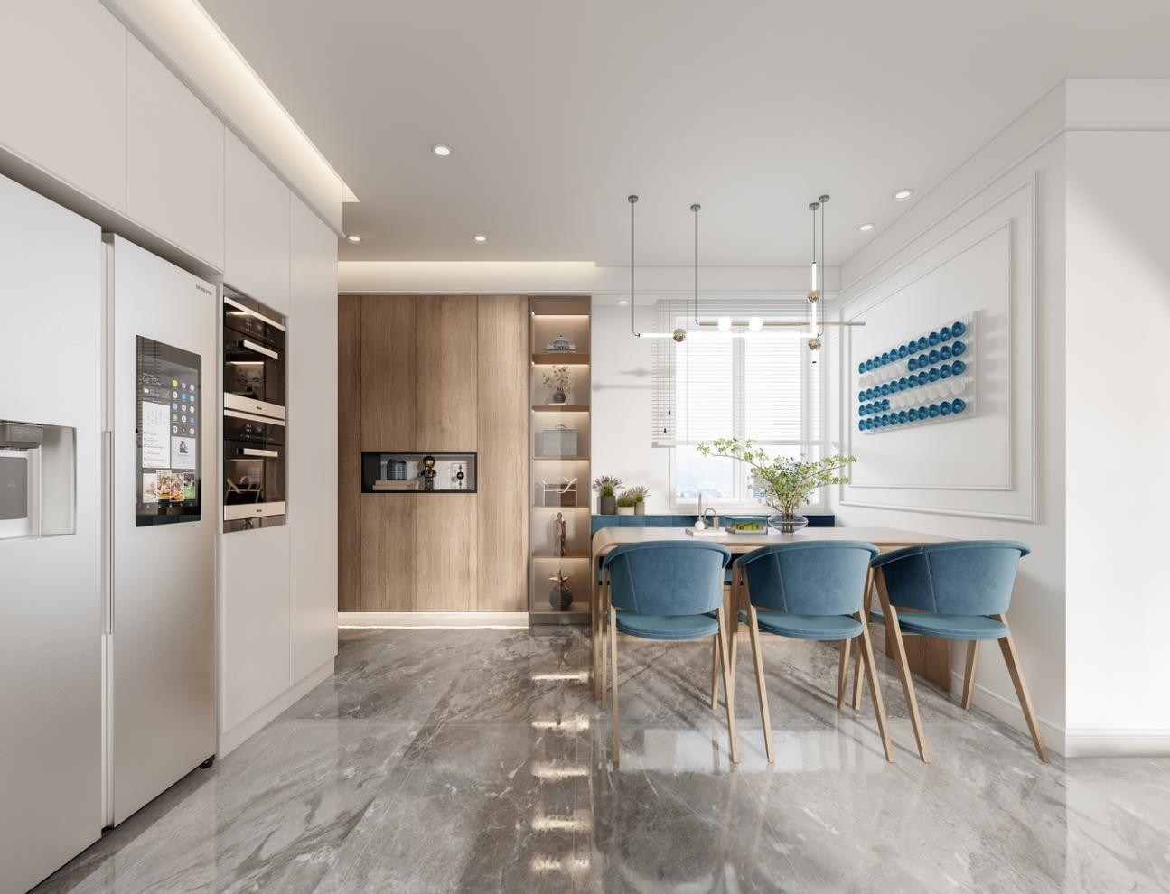 整体风格以现代融合法式为主,设计上注重细节处理,通过色彩的变化、软装的搭配和适当的留白让空间更加柔和温馨。尽管没有繁复的修饰,却予人以浪漫、清新的感觉。
