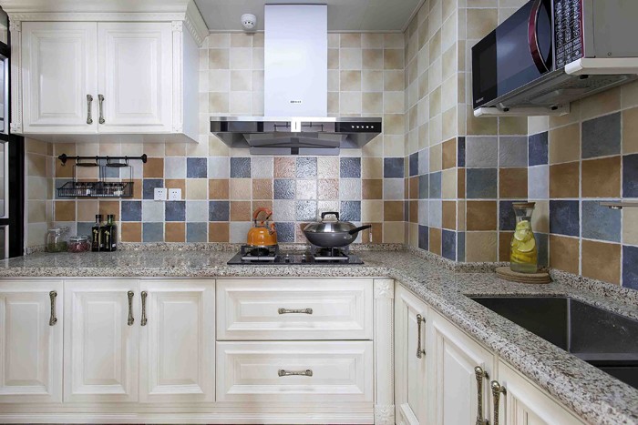 厨房采用L型橱柜,省去了上柜的设计使得原本很小的空间 变得宽阔了起来。