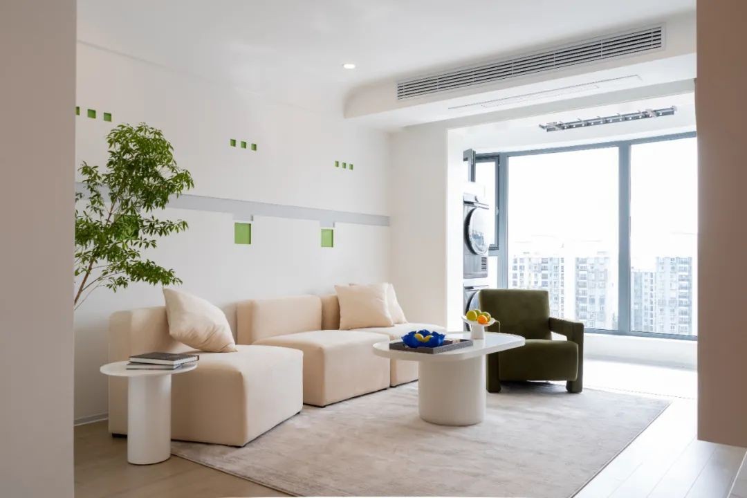 空间没有做太多的改动,因为设计师进场后发现想敲的厚墙都是混凝土的,不能动。因此主要从收纳、软装、灯光上去进行优化。