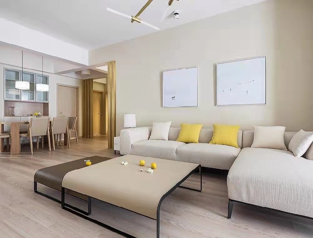 全屋乳胶漆,整体颜色是明亮的浅色。