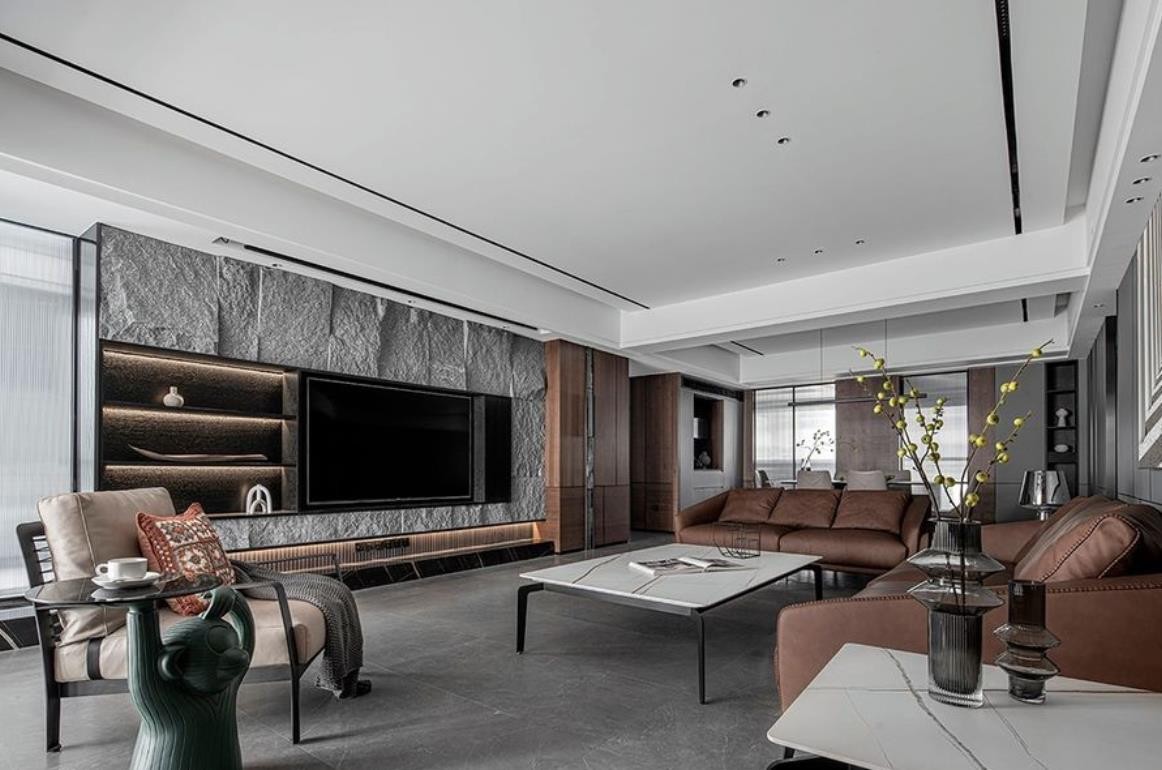 游走并贯穿了所有空间,渲染着石材的古朴与胡桃木的韵味,为业主量身打造了这一处自然气息与现代时尚风格交汇的私属区域。
