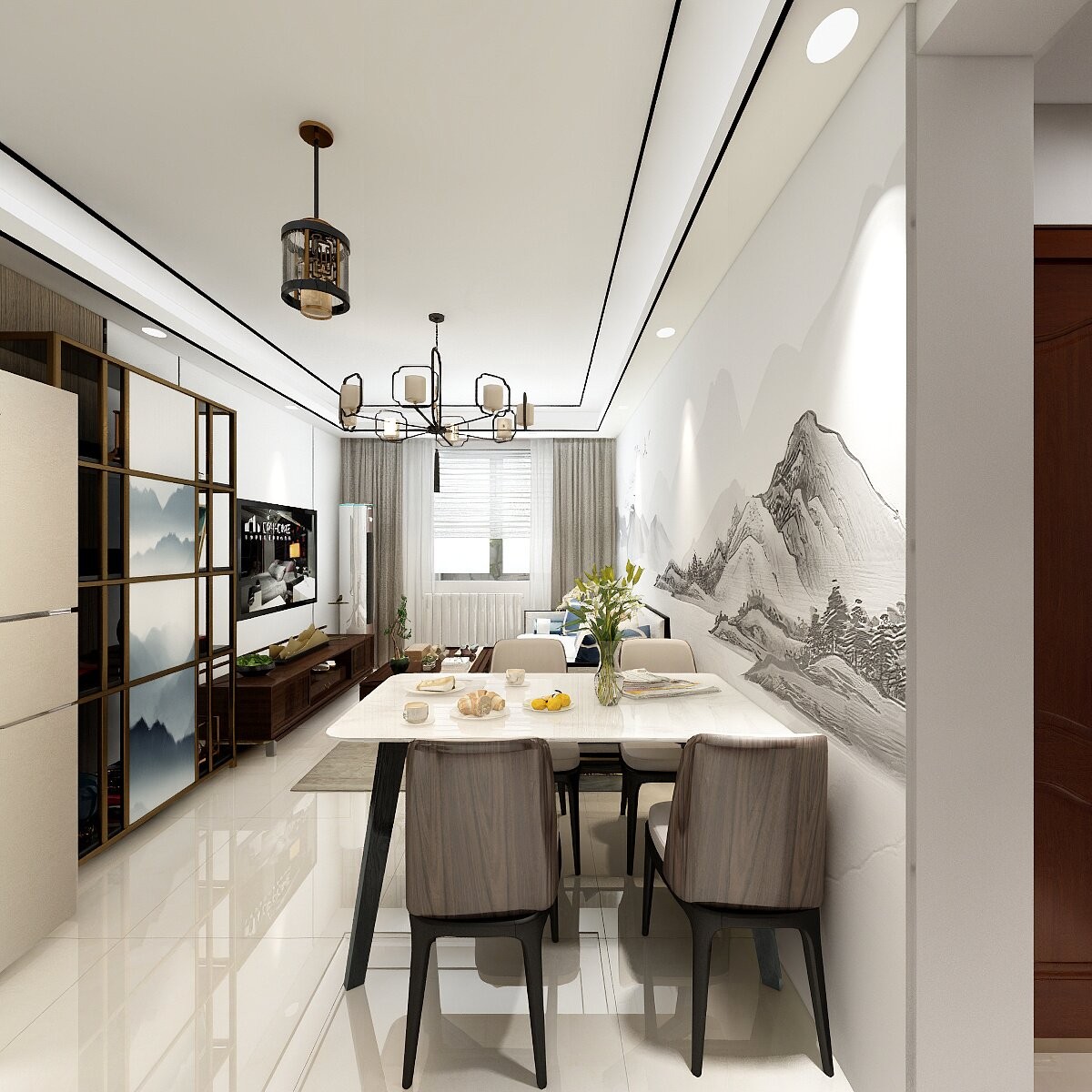 在中式的设计风格中糅合灰色调设计,使其减少原始中式风格带给小户型房间的沉重感。