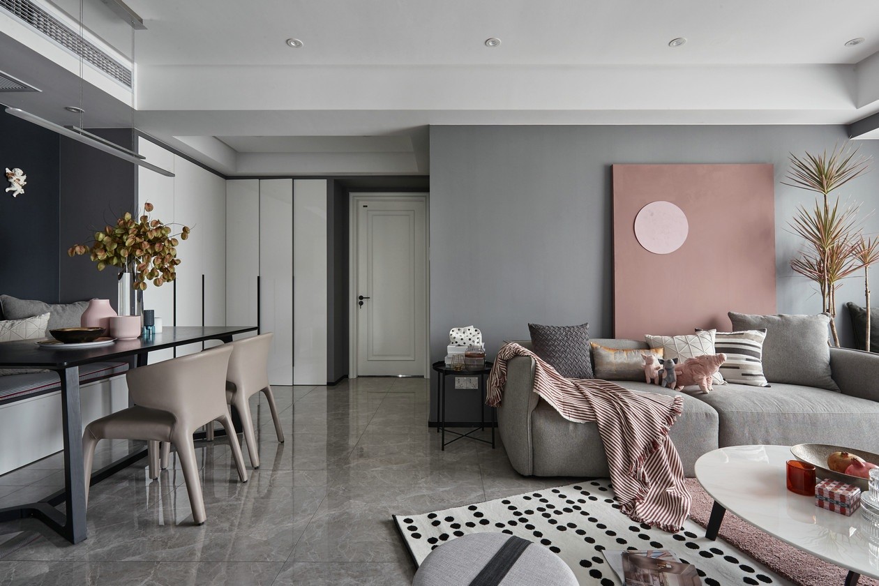 本方案为85俩居室,整体设计为黑白灰现代风格,