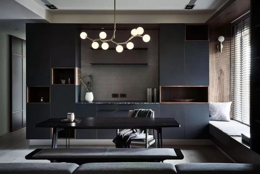 餐厨柜,衍生西橱功能,又可以收纳,兼具书房功能,业主可以在大餐桌上自由办公