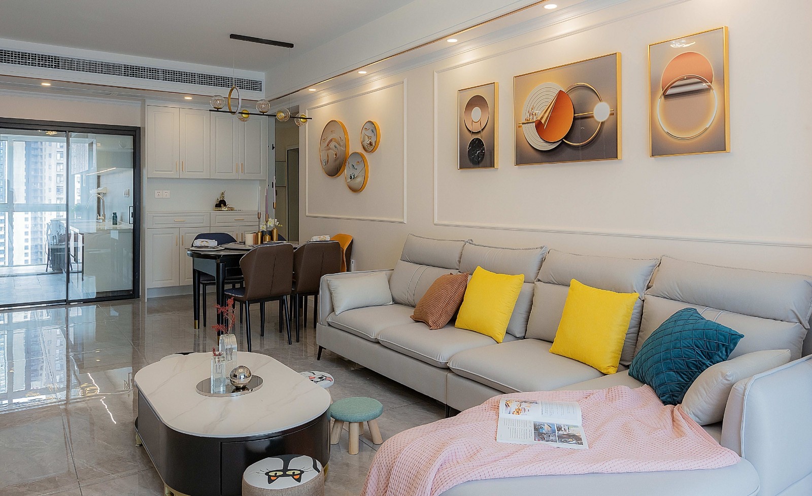 本案是一对正在备孕的年轻夫妻,打算未来十年以内都是会居住的,所以期望值非常高。也因为屋主预算不多,所以整体都是以简洁为主,穿插一些偏轻奢的元素在内,所以整个屋子的风格都是比较温暖活泼、时尚轻奢的氛围。 这套房装修期间,一直都是男屋主全程在和我们接洽,他打趣说她老婆这段时间和他闹矛盾,一定是知道装修是件不容易的事,所以乘机都推给他来处理。