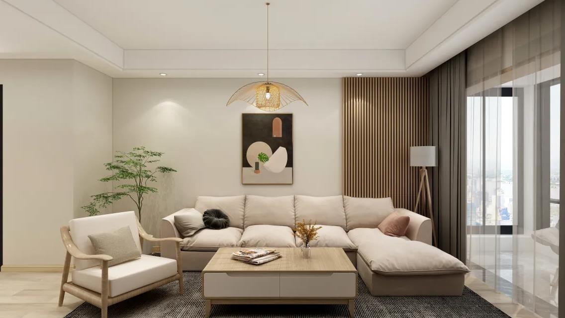 客厅背景墙采用格栅板做点缀,增加客厅的颜色搭配