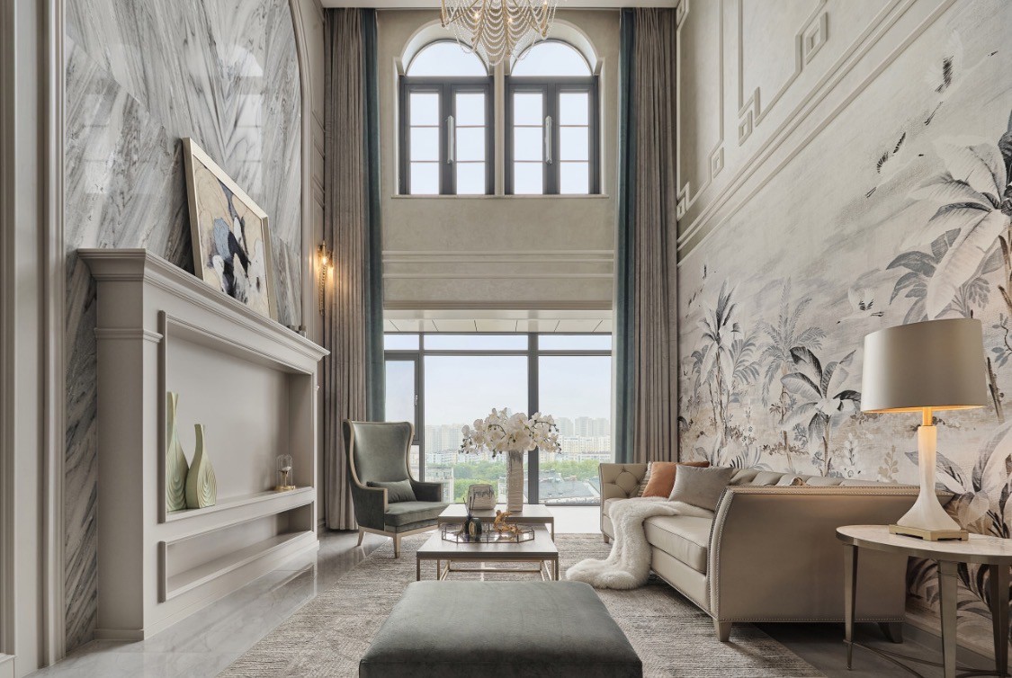 这是一套面积为170平米的顶层住宅,屋主夫妻、孩子和老人一同居住。房子的原始户型开阔,采光充足,和屋主充分沟通后,设计师在硬装上没有大拆大改,尊重空间原有结构,进行了细化调整。