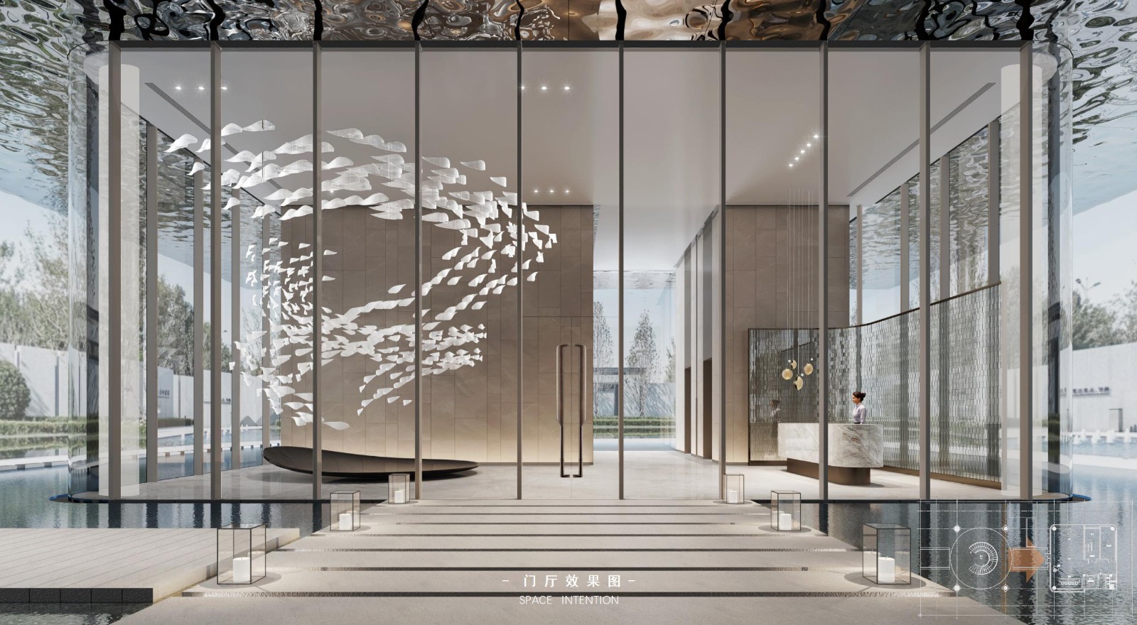 “水”乃生命之源,万物之源。 “鱼”则象征美好寓意。 结合赵巷江南水乡的人文地貌、水系纵横的自然地貌,以水为载体,以鱼为主题,赋予空间无限的生命力。