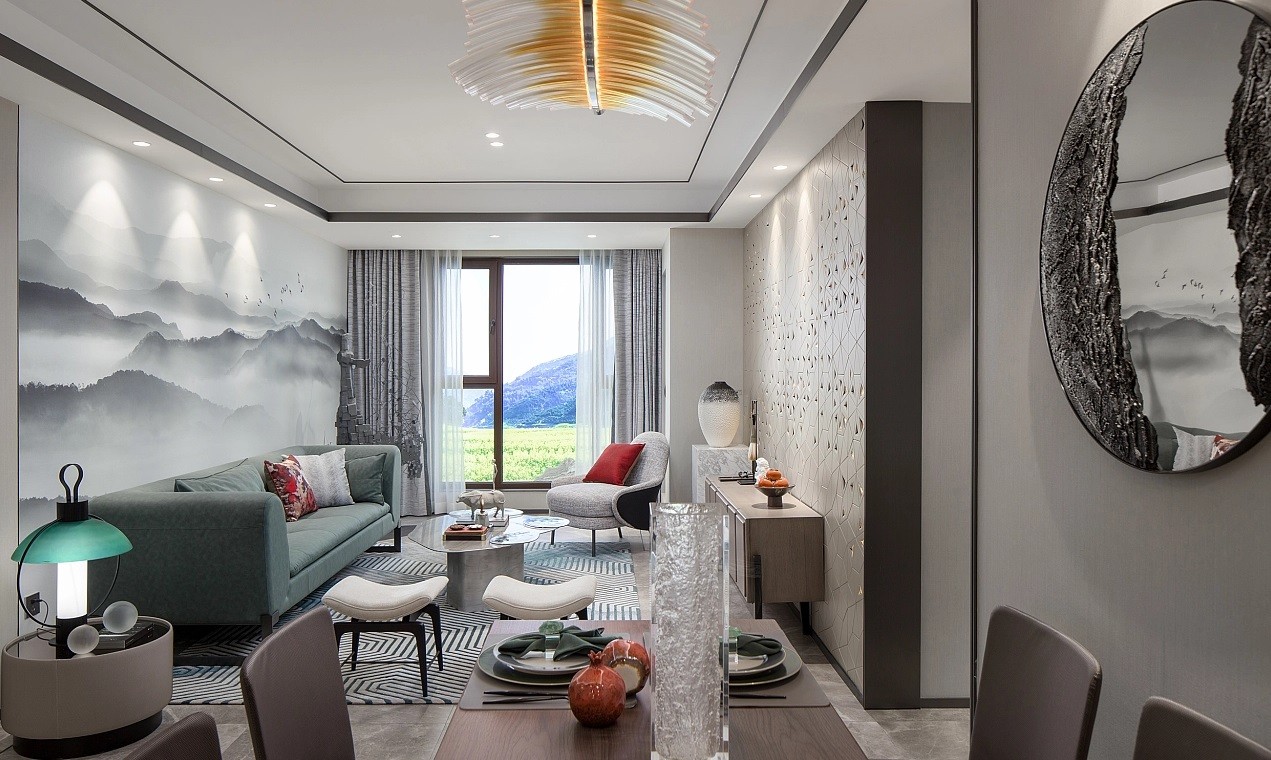 家具线条简约流畅,不同材质的运用和碰撞,凸显新中式风格特有的质感和美感。格局上也特别的开阔大气,既满足了现代人的居住要求,也与物主品味完美契合。