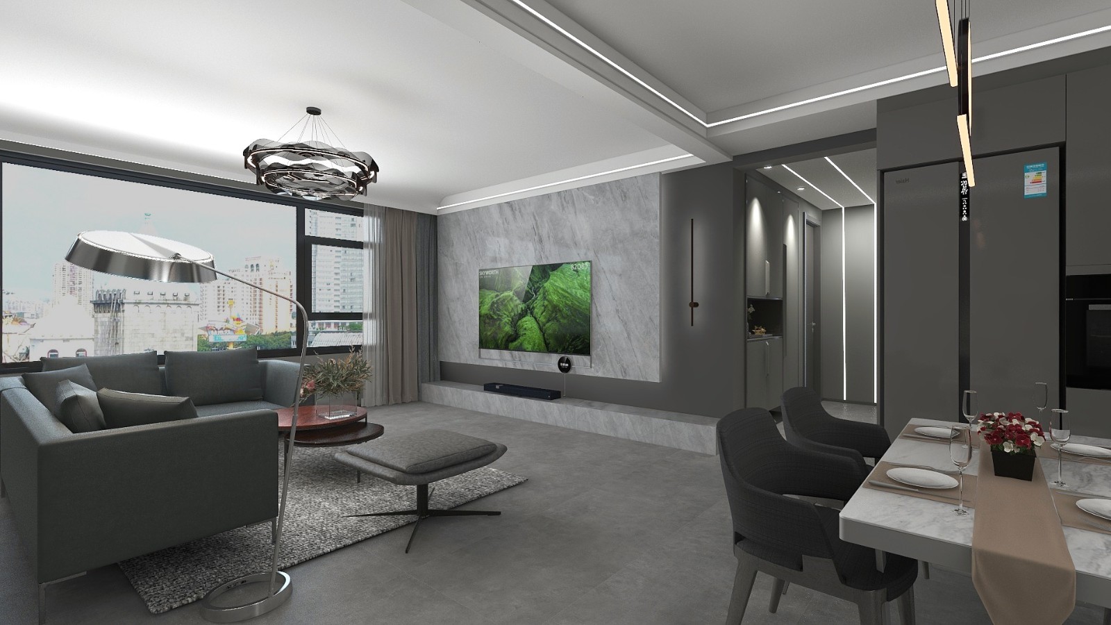 灰色系极简餐厨一体,清爽干净拒绝油腻,让做饭不再孤单